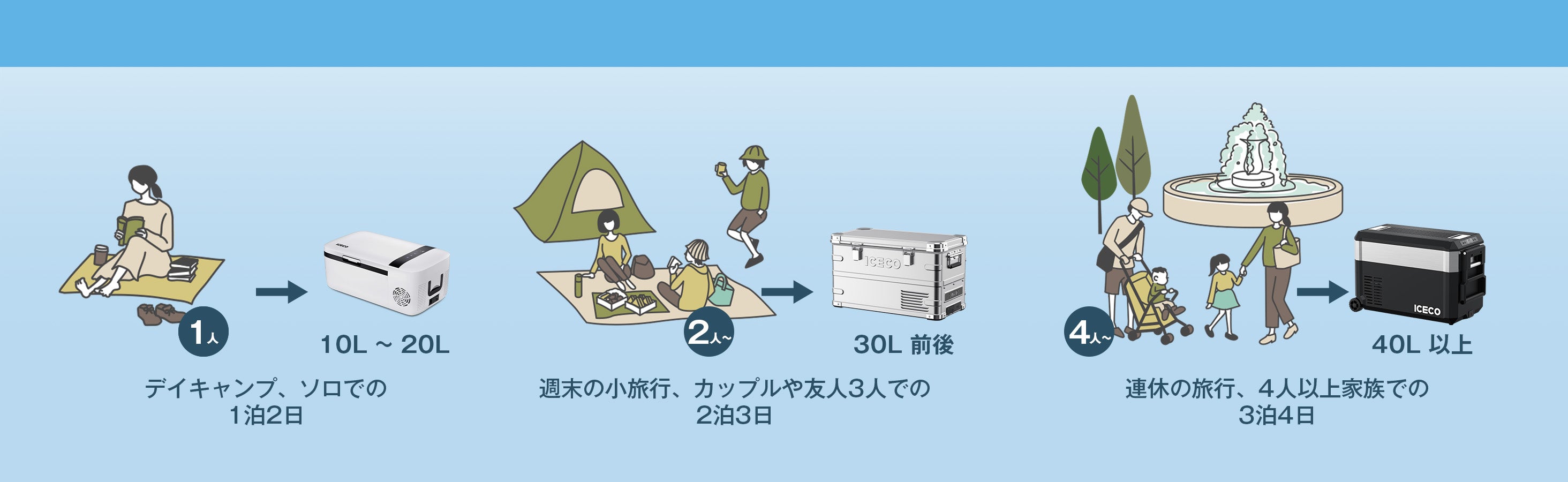40~50本の350ml缶ドリンクを入る可能で、週末の小旅行に最適。カップルや友人3人での2泊3日の旅を楽しむことができる。