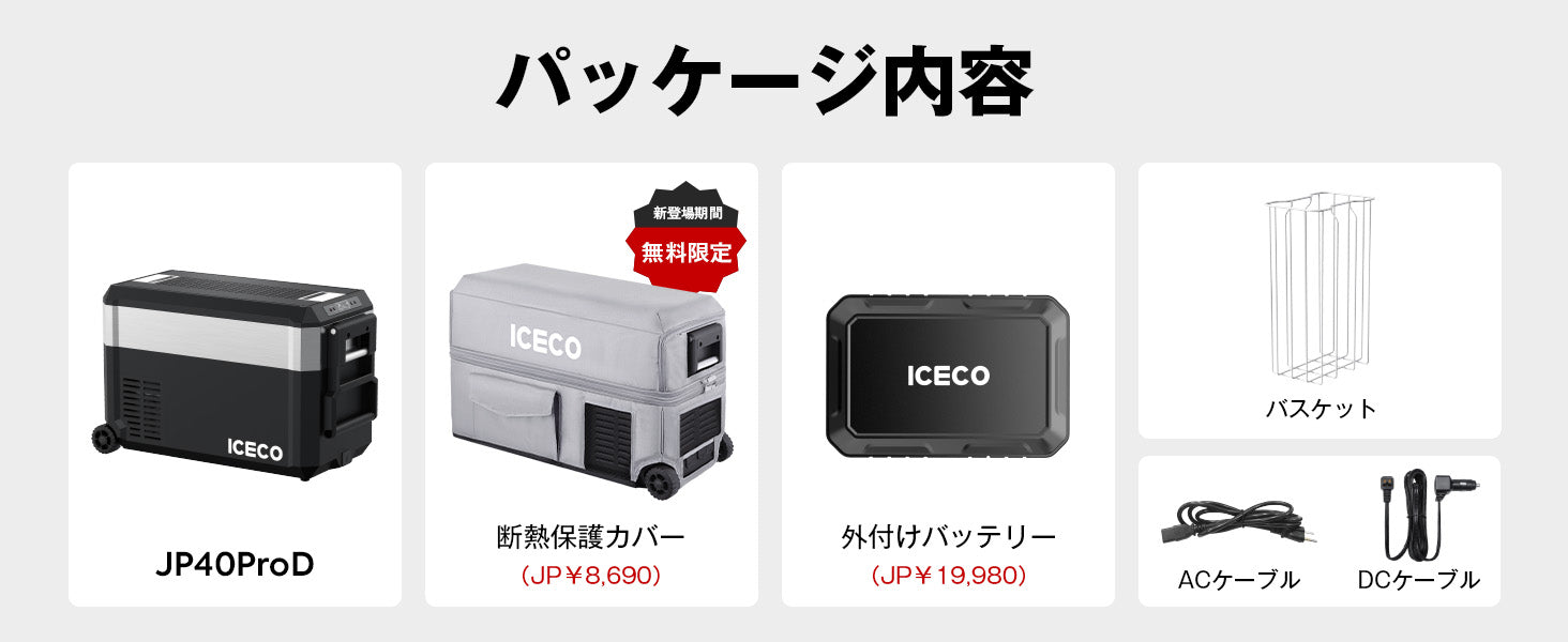 ICECO JP40ProDポータブル冷蔵庫+バッテリー1個セット。ご注意:冷蔵庫とバッテリーは別々に発送され、前後に届きます。