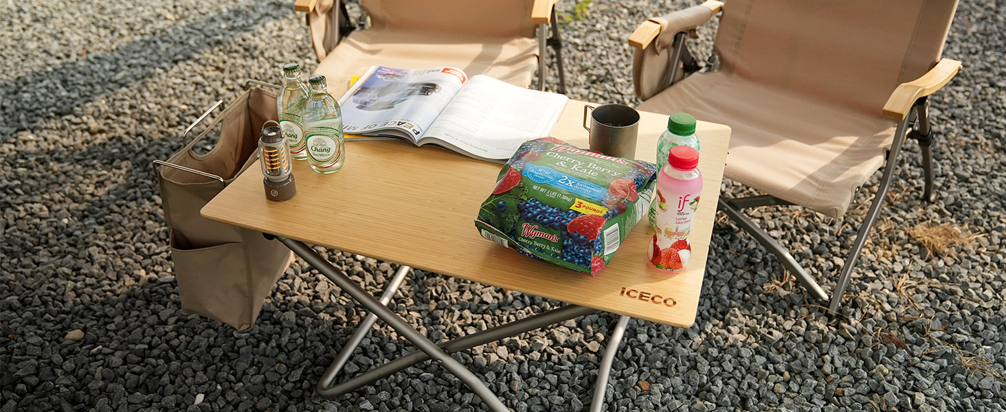側面着脱式収納袋付き、小物管理簡単:最初の150件のご注文には、側面着脱式ポケットが付属しており、実際のキャンプでは「欲しいものがすぐ手に届く場所にある」という快適さに繋がってきます。取り外し可能で、最大30kgの物品を載せてもテーブルが倒れない。