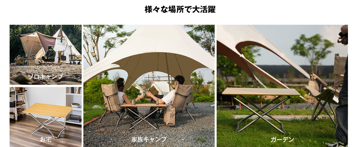 実際のキャンプでは「欲しいものがすぐ手に届く場所にある」という快適さに繋がってきます。取り外し可能で、30kgの物品を載せてもテーブルが倒れない。