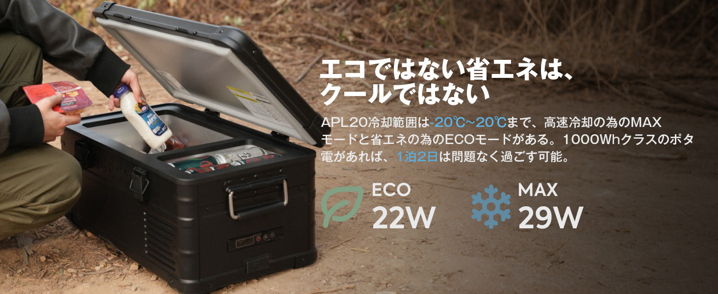 SECOPナノコンプレッサー:APL20の冷却範囲は-20℃〜20℃まで、すべての冷凍や冷蔵の必要性を満たすために。高速冷却のためのMAXモードと省エネのためのECOモードがある。SECOP最小型のコンプレッサーで、重量はわずか10.4KGだが、性能は安定しており、アウトドアライフをより良く体験できます。