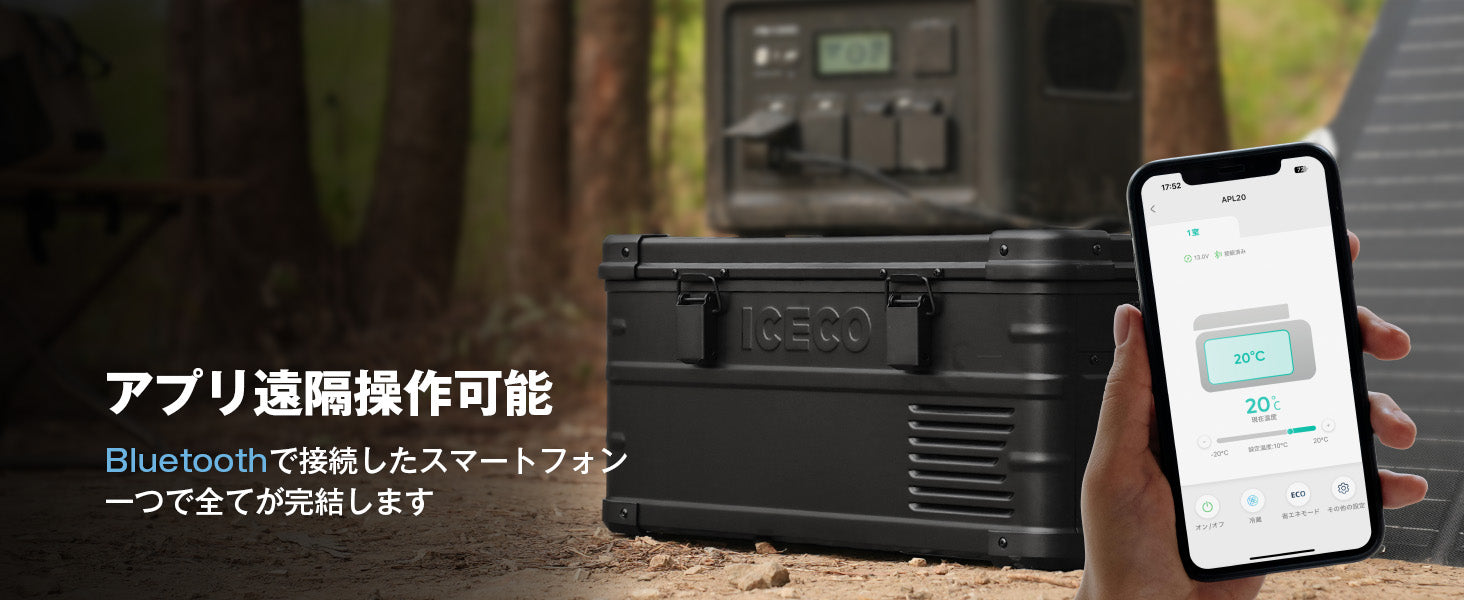 3WAY電源対応、アプリ制御:各冷蔵庫には、2.5mのシガーソケットとアダプターが付属しています。3WAY電源対応、家(100/240V)車(12V/24V)ポータブル電源に対応できで使用可能です。 アプリでコントロール、遠隔操作可能。