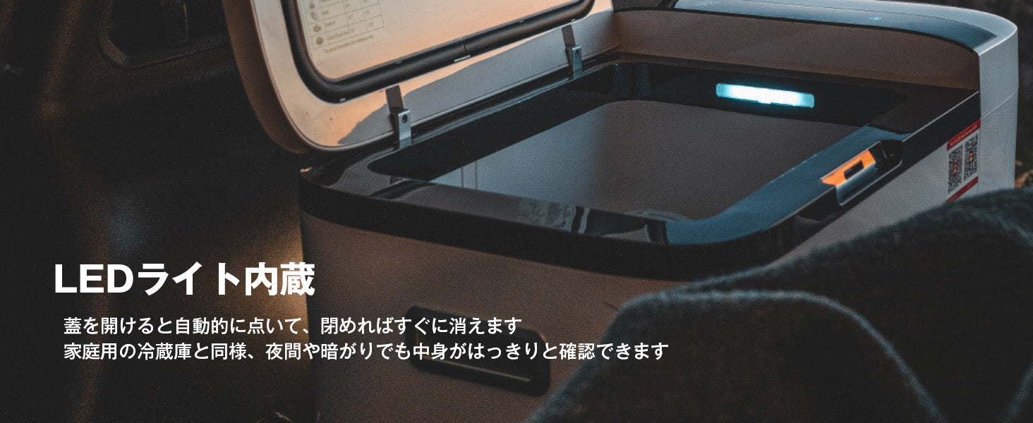 挟まれを防止ドア、低騒音:ドアがゆっくり閉じる、挟まれを防止、子供でも安全使用できます。<45dB低騒音、休息や仕事の邪魔をすることなく、より快適に車載冷蔵庫を楽しむことができます。
