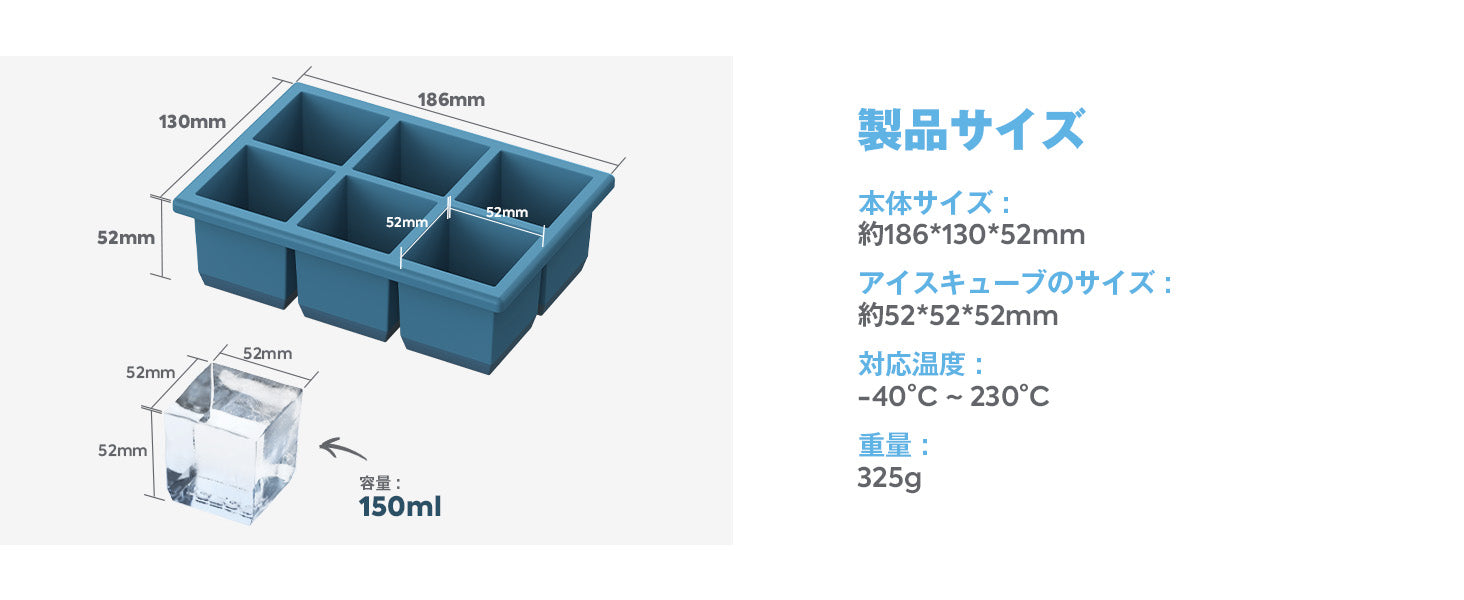 【仕樣】本体サイズ:約18.6*13*5.2cm、アイスキューブのサイズ:約5cm、対応温度:-40℃~230℃ 。