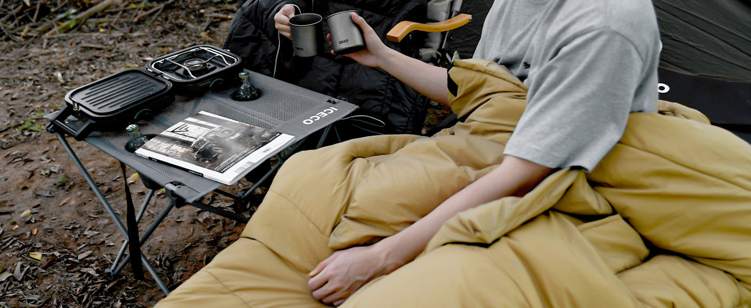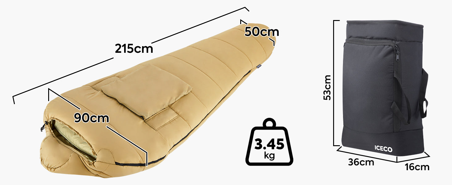 2000gシルクコットン充填と40Dナイロン生地、冬のニーズに最適!:ICECOの寝袋は超微細マイクロファイバー構造の人工シルクコットン2000gを採用し、湿気の多い環境でも、ダウンよりも優れた保温性能を持っています。100%アニマルフリー。羽毛が苦手な人にもぴったり。生地には40Dナイロンを採用しており、優れた耐摩耗性だけでなく、湿気や雪からの効果的な防御もあり、秋冬の使用に完璧に対応しています。さらに、直接洗濯機で丸洗いでき、寝袋の底部には2本のハンガーループが付属し、干すのも便利です。