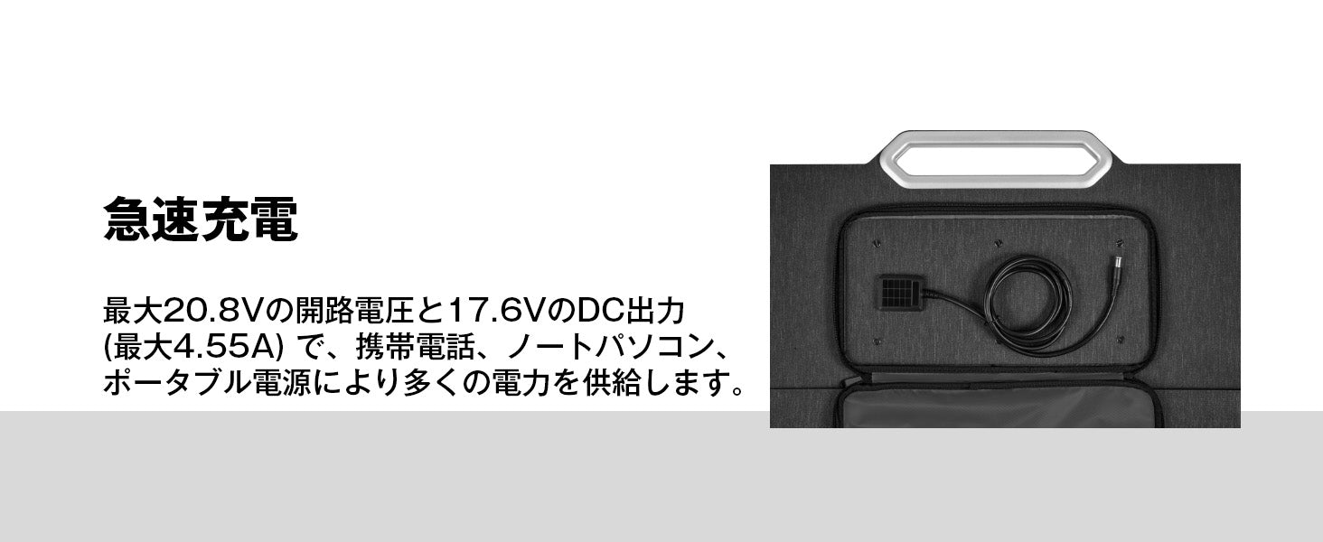 急速充電:最大20.8Vの開路電圧と17.6V/4.55AのDC出力を実現します。携帯電話、ノートパソコン、ポータブル電源により多くの電力を供給します。ICECOマグネットポータブル電源をフル充電するには約3.5時間かかります。